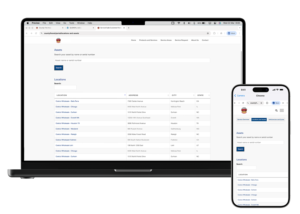 Our Customer Portal gives you real-time visibility into your fire and life-safety program across every building you manage. View inspection reports, track open deficiencies, download certificates, and see what is coming due next – all from a single, secure dashboard.